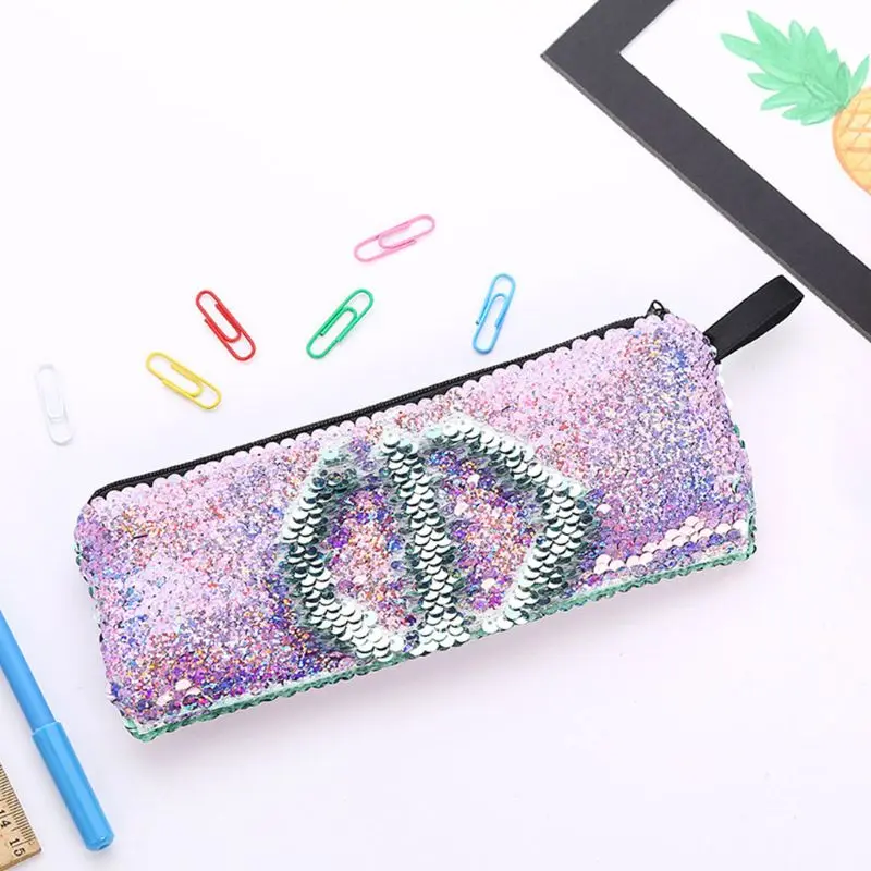 معرض من عكسها الترتر ماكياج الحقيبة التجميل حقيبة سستة القلم مقلمة تخزين محفظة