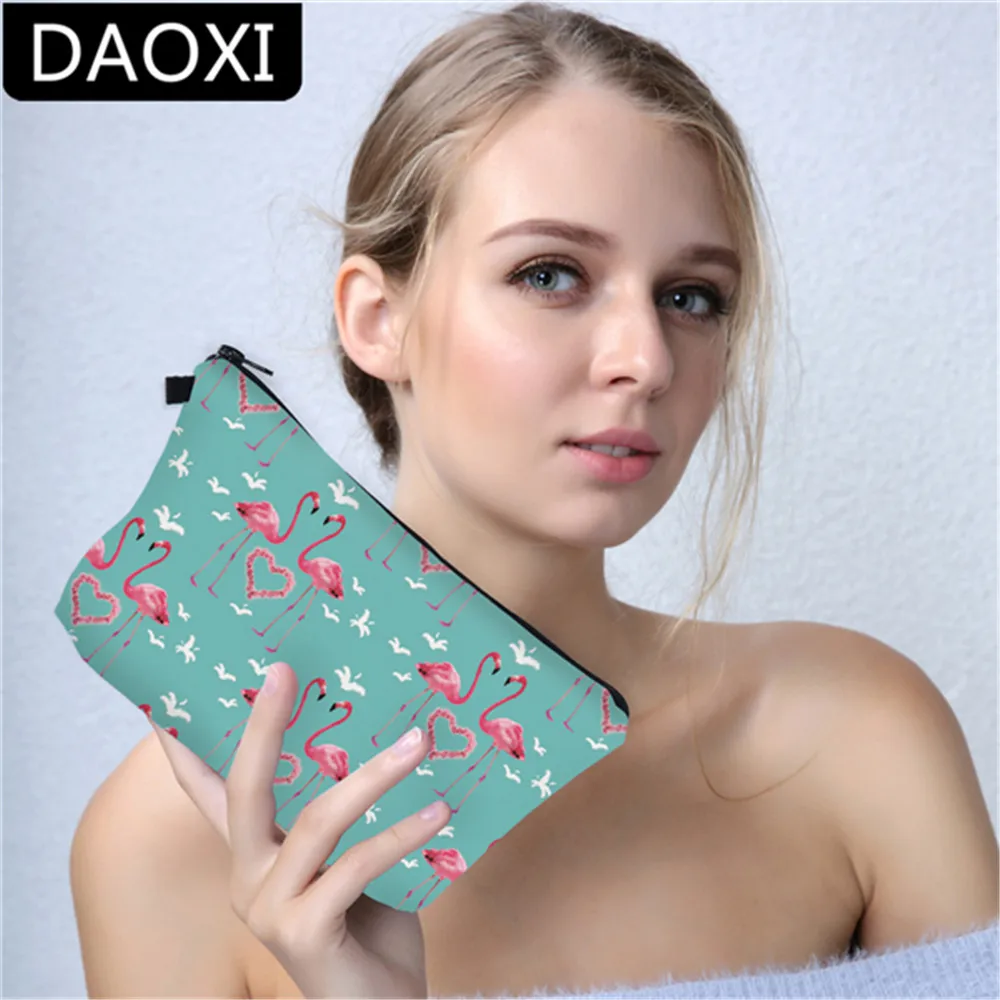 المنتجات ذات الصلة ل Cosmetic Bags و DAOXI 3D الطباعة طيور النحام سماوي التجميل حقيبة المرأة الأزياء القلب المنظم الحقيبة الغرور السفر ريشة حقيبة مستحضرات تجميل