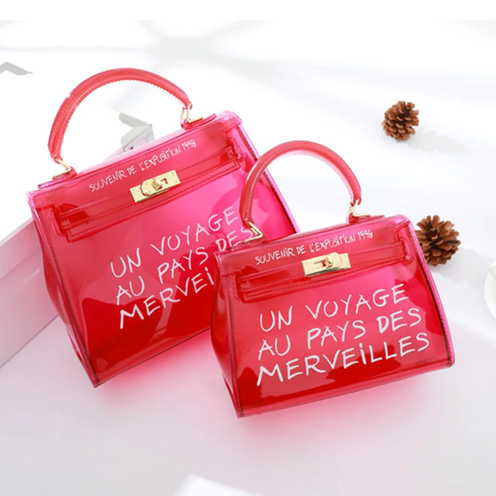 استعارات من واضح شفاف PVC الكتف التجميل حقائب النساء الحلوى اللون للنساء هلام محفظة الصلبة حقائب كبيرة قدرة Crossbody حقيبة