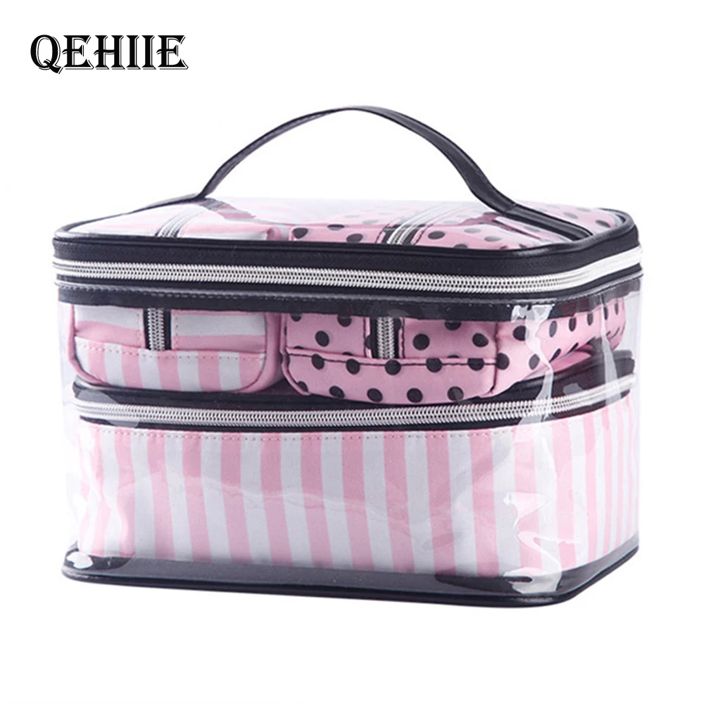 استعارات ل جديد الكورية النسخة 4 قطعة شفافة حقيبة مستحضرات تجميل من البلاستيك المرأة الوردي سفر منظم حقيبة مستحضرات التجميل الجمال حقائب مكياج شحن مجان...