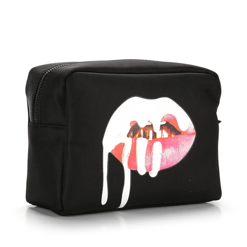 صور ل الأزياء الشفاه التجميل حقيبة النساء السفر المحمولة سستة يشكلون أكياس فتاة حقيبة مستحضرات تجميل الجمال غسل المنظم أدوات الزينة حقيبة التخزي...
