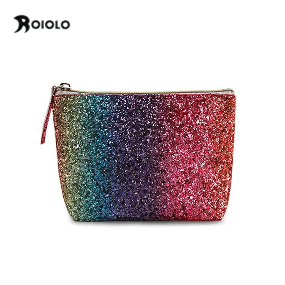 أرغب في شراءمعلومات اضافية دروبشيبينغ النساء السفر التجميل حقيبة قوس قزح الترتر المكياج حقيبة سستة الشفاه فتاة منظم حقيبة الماكياج تخزين حقائب أدوات الزينة