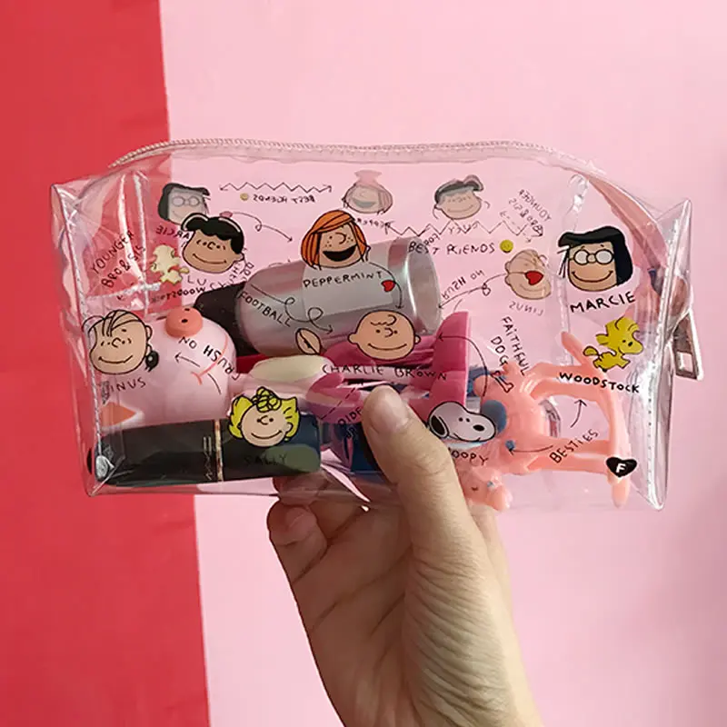 معرض ل لطيف الكرتون فتاة حقيبة مستحضرات تجميل النساء شفافة حقيبة مستحضرات التجميل سحاب من الكلوريد متعدد الفينيل ماكياج كيت السفر أدوات الزينة الم...
