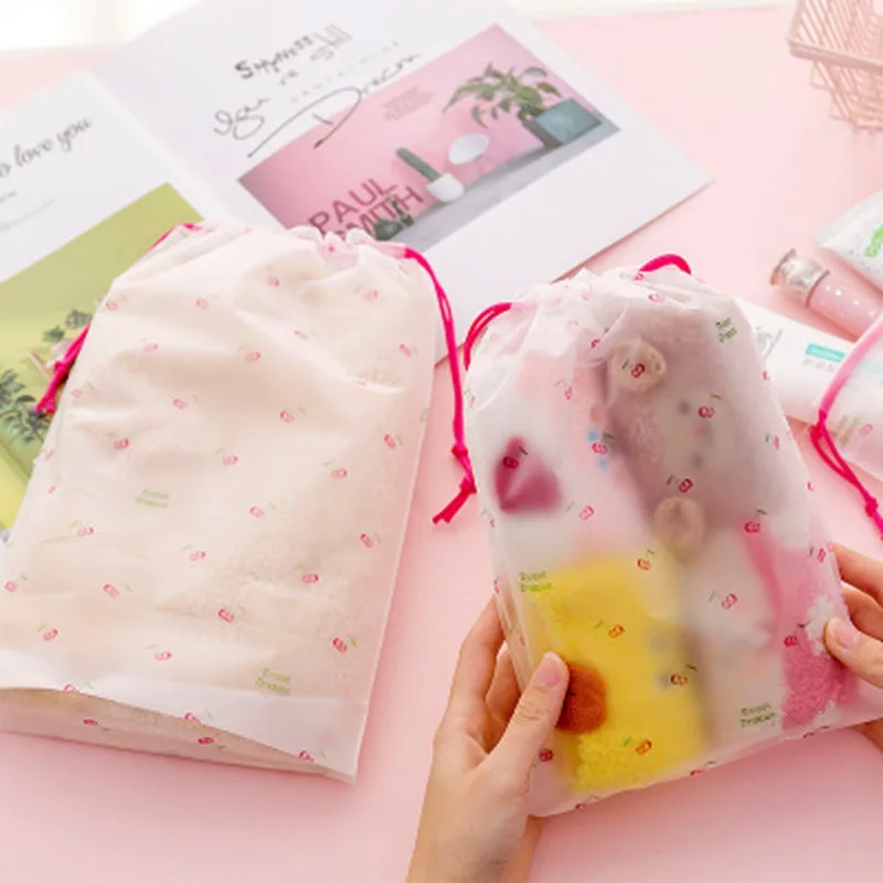 صور من السفر شفافة فرك الكرز التجميل حقيبة حقيبة مستحضرات تجميل النساء سستة المكياج حمام المنظم كيس التخزين غسل الزينة عدة