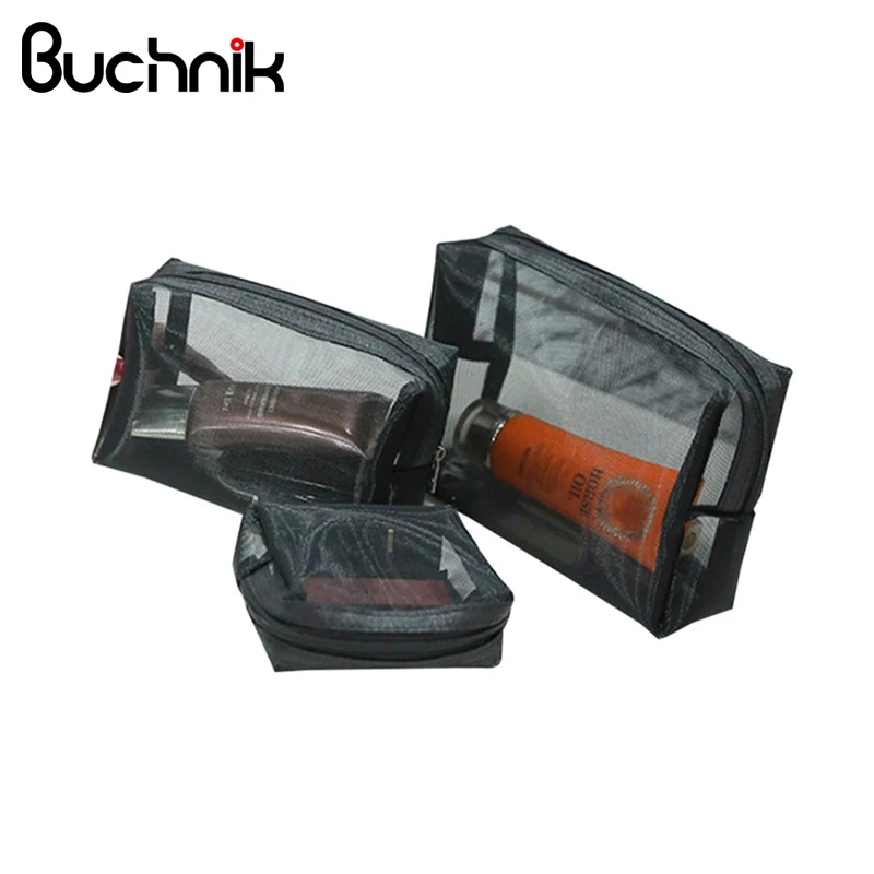 المنتجات ذات الصلة ل Cosmetic Bags و BUCHNIK 3 قطعة/المجموعة أسود صافي التجميل حقيبة أزياء النساء السفر شفافة غسل الزينة المنظم حالة المحمولة ماكياج الحقيبة