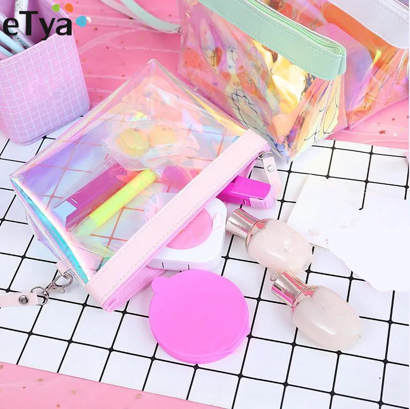 استعارات من ETya النساء للماء السفر التجميل حقيبة شفافة المنظم الليزر سستة صغيرة كبيرة يشكلون حقيبة الجمال أدوات الزينة حالة