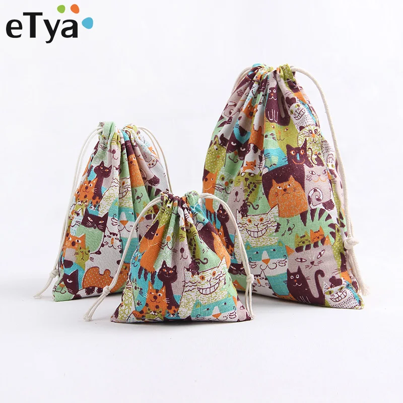 معرض من ETya المرأة ماكياج المنظم سفر التجميل حقيبة القطن الكتان الرباط مستحضرات التجميل حقيبة للتخزين متعددة الوظائف الإناث حقيبة مستحضرات تجميل