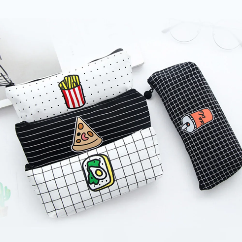 صور من جميل الغذاء البيتزا فرايز حقيبة مكياج من القماش طالب مقلمة Kawaii مخطط تخزين الجمال حالة صغيرة سستة حقيبة مستحضرات التجميل