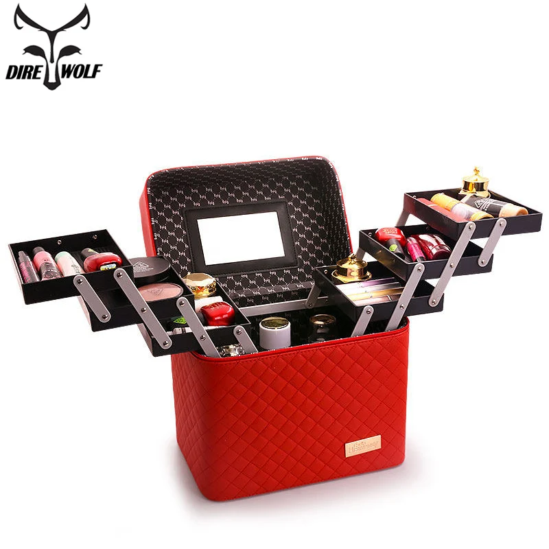 استعارات من المرأة متعدد الطبقات حقيبة مستحضرات تجميل سعة كبيرة مواد تجميل احترافية مقسم حقيبة لمستحضرات التجميل الأزياء حقائب للزينة حقائب