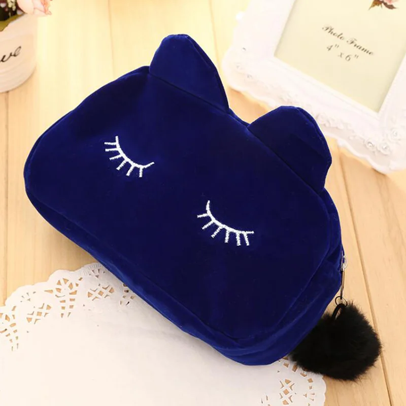 صور ل جديد أزياء المحمولة الكرتون القط عملة حقيبة للتخزين السفر ماكياج الفانيلا الحقيبة التجميل حقيبة حالات للنساء الفتيات
