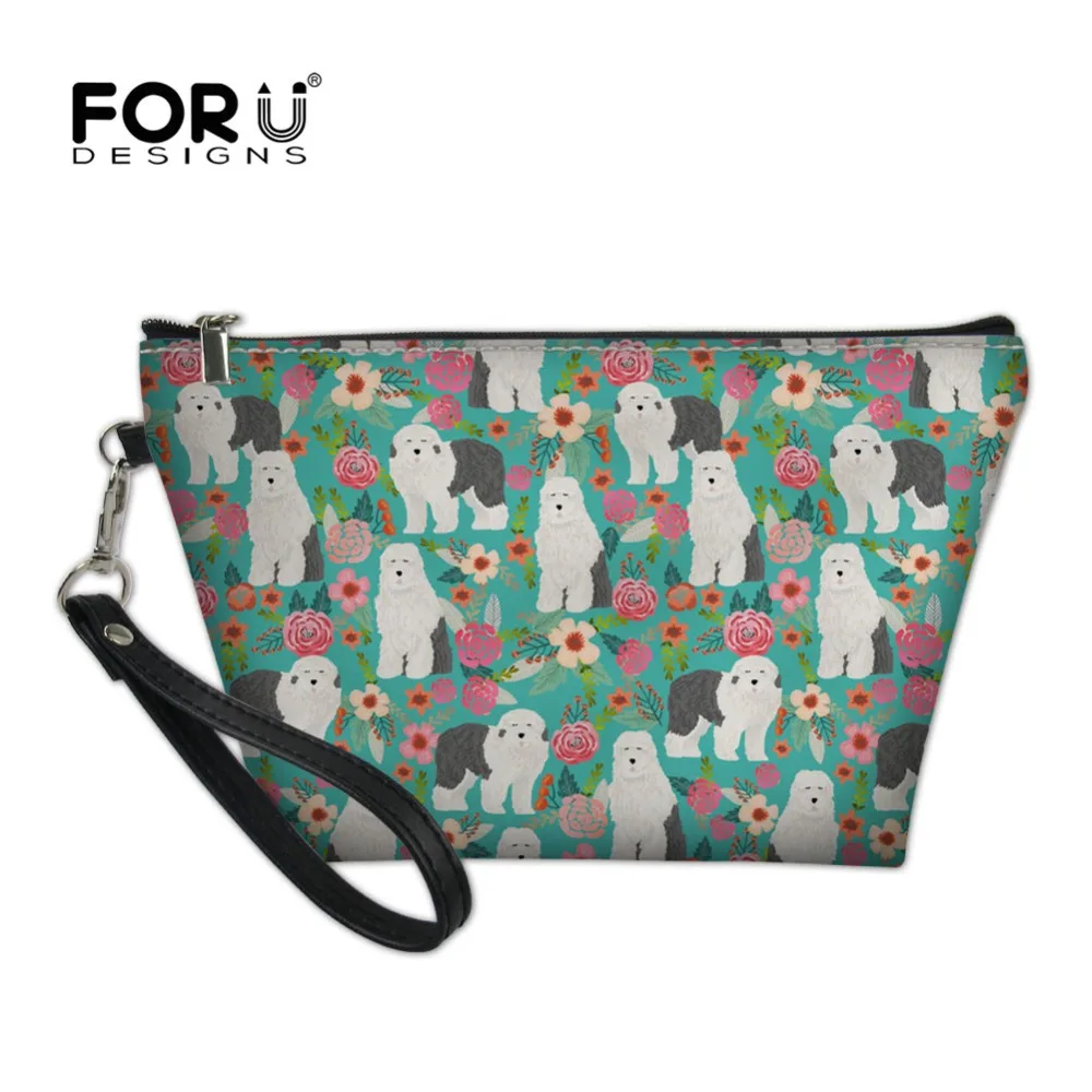 معرض من FORUDESIGNS كلب الراعي الانجليزية القديمة طباعة النساء يشكلن حقيبة Necessarie السفر المنظم لمستحضرات التجميل حقيبة البسيطة الحقيبة الغرور حالة