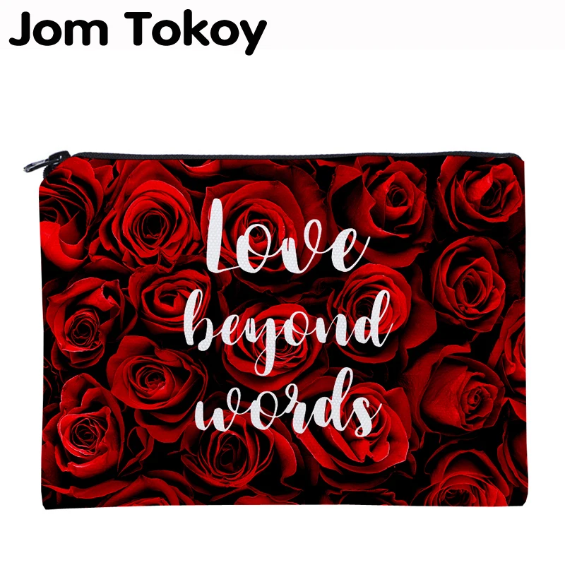 صور من Jom Tokoy الطباعة الأحمر روز الضروريات للمسافرين المنظم حقيبة مستحضرات تجميل النساء إلكتروني مربع التجميل حقيبة مع سحاب