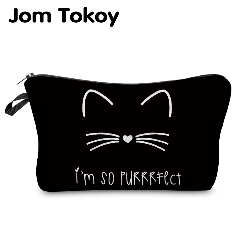 البحث عن معلوماتمعلومات اضافية Jom Tokoy حقيبة تنظيم مستحضرات التجميل النقي أسود لطيف القط يطبع التجميل حقيبة أزياء المرأة العلامة التجارية حقيبة مستحضرات تجميل