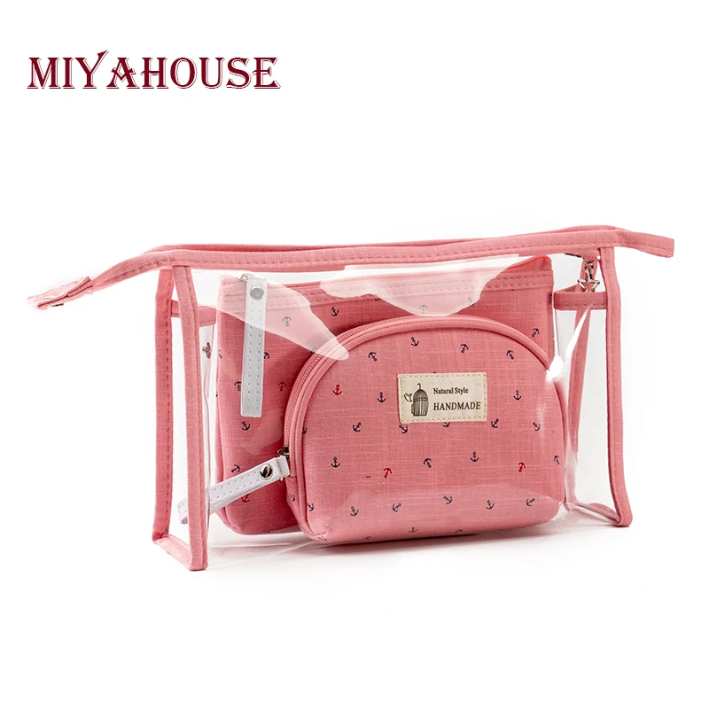 صور ل Miyahouse 3 قطعة/المجموعة الأزياء العلامة التجارية التجميل أكياس للماء Neceser المحمولة المكياج حقيبة كلوريد متعدد الفينيل للنساء الحقيبة السفر حقي...