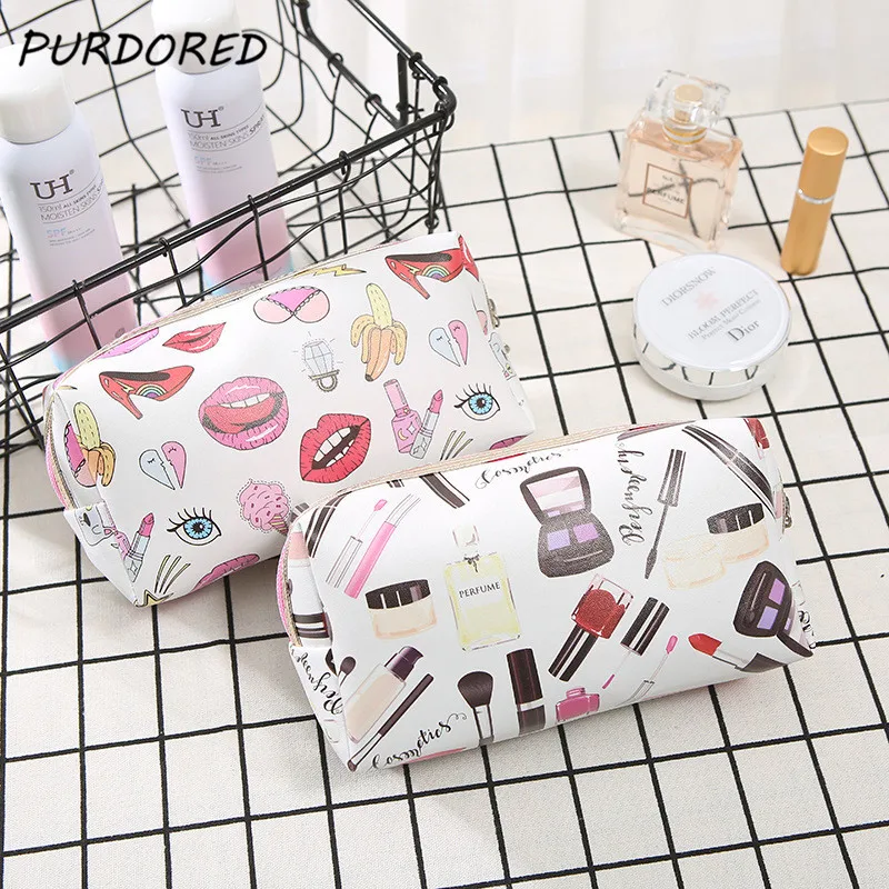 استعارات من PURDORED 1 قطعة 3D الطباعة حقيبة مستحضرات تجميل سفر النساء الشفاه التجميل حقيبة أدوات الزينة الجمال ماكياج المنظم kosmetyczka دروبشيبينغ