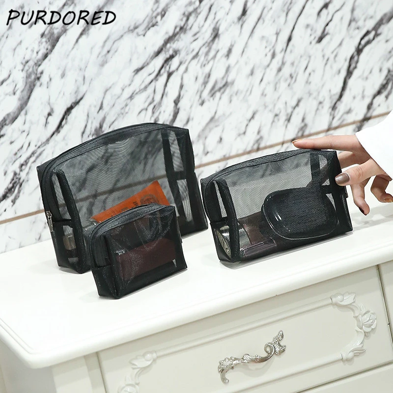 استعارات من PURDORED 1 قطعة شبكة سوداء التجميل حقيبة سستة حقيبة مستحضرات تجميل للنساء غسل حقيبة مستحضرات تجميل neceser maquillaje دروبشيبينغ