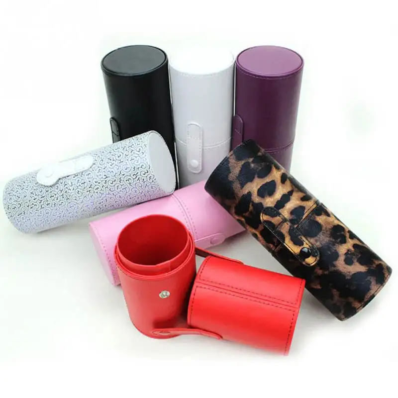 معرض ل 1 قطعة السفر الأزياء بو حقيبة منتجات تجميل جلدية حالة 17.6*6.8 سنتيمتر برميل شكل فرشاة للمكياج حامل حقيبة أدوات الزينة صندوق تخزين منظم