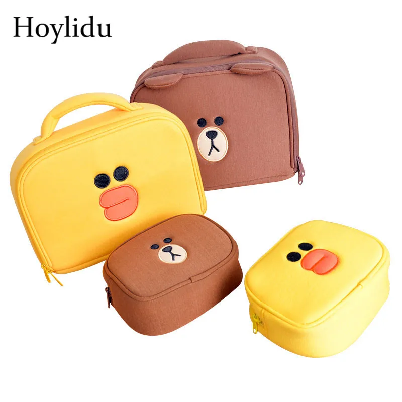 شراءمعلومات اضافية الكرتون التجميل حقائب النساء لطيف الدب بطة مستحضرات التجميل مربع حالة للبنات المكياج السفر المنظم الجمال أدوات الزينة ماكياج الحقيبة