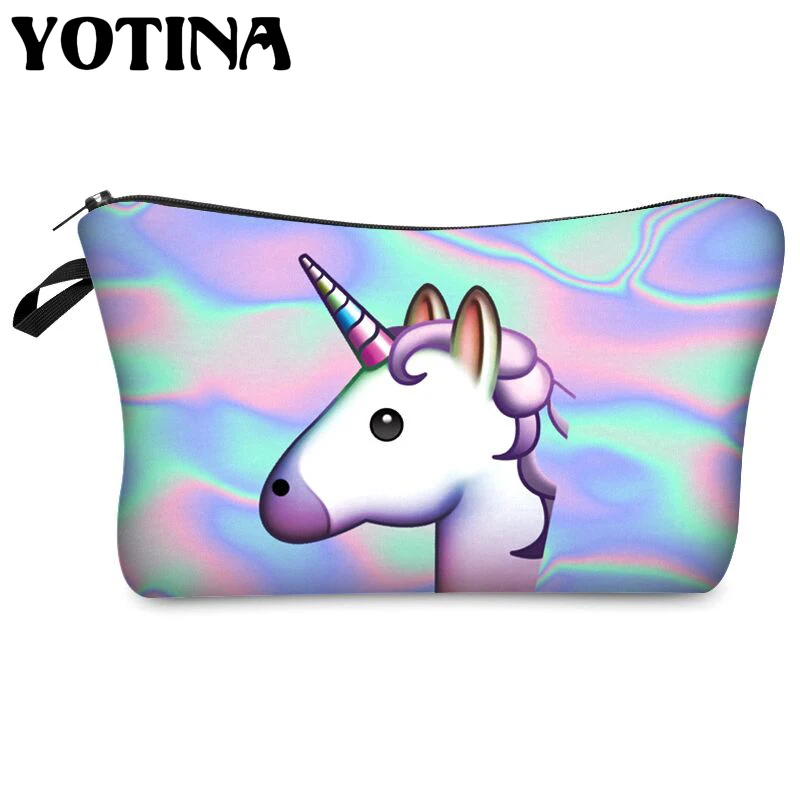 البحث عن معلوماتمعلومات اضافية Yotina اللاما يونيكورن الطباعة حقيبة مستحضرات تجميل نمط لطيف مستحضرات التجميل الجيبات للسفر السيدات الحقيبة النساء سستة التجميل حقيبة